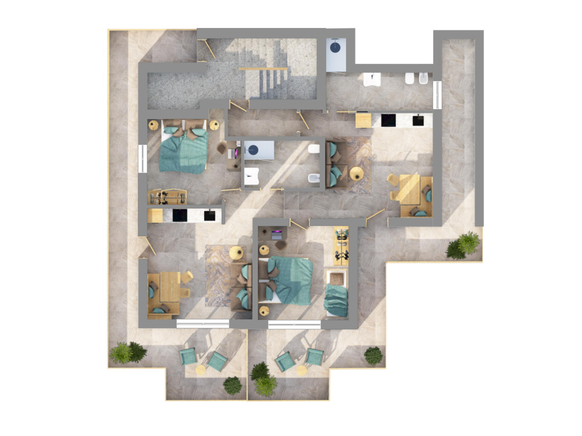 Le ampie terrazze caratteristica principale di tutta la struttura, permettono di godere di una stupenda vista sul lago.